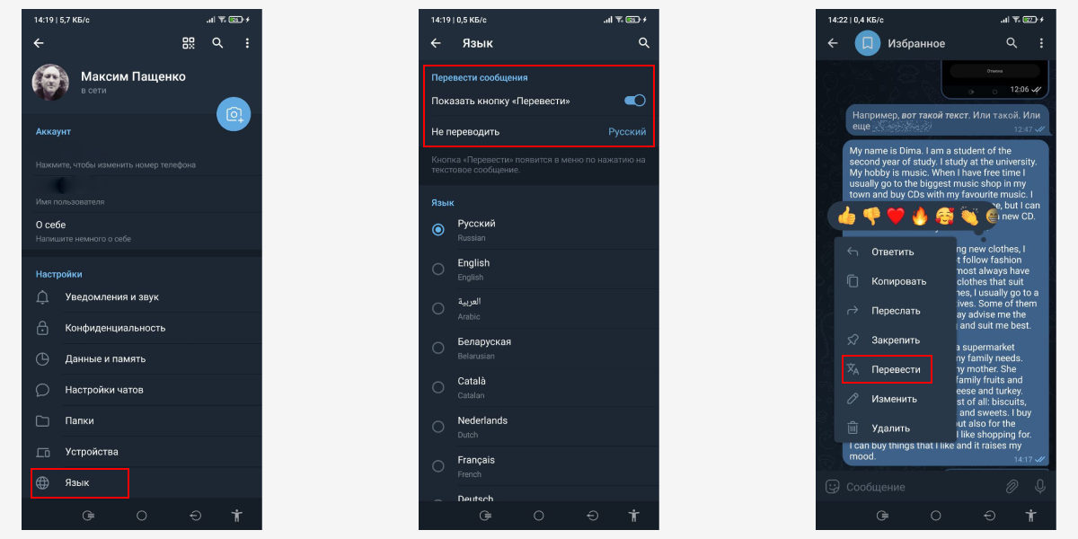Как сделать. Тапните по сообщению. Если в списке функций нет пункта «Перевести», заходите в настройки. Выберите вкладку «Языки» и переставьте флажок во включенное положение. Теперь пункт появится во всплывающем окне.