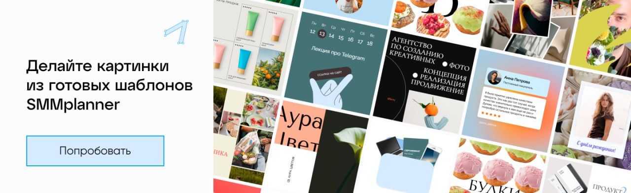 Оформить карточку для Телеграма можно с помощью «Холста» – онлайн редактора SMMplanner. Внутри есть шаблоны для создания самых разных картинок.