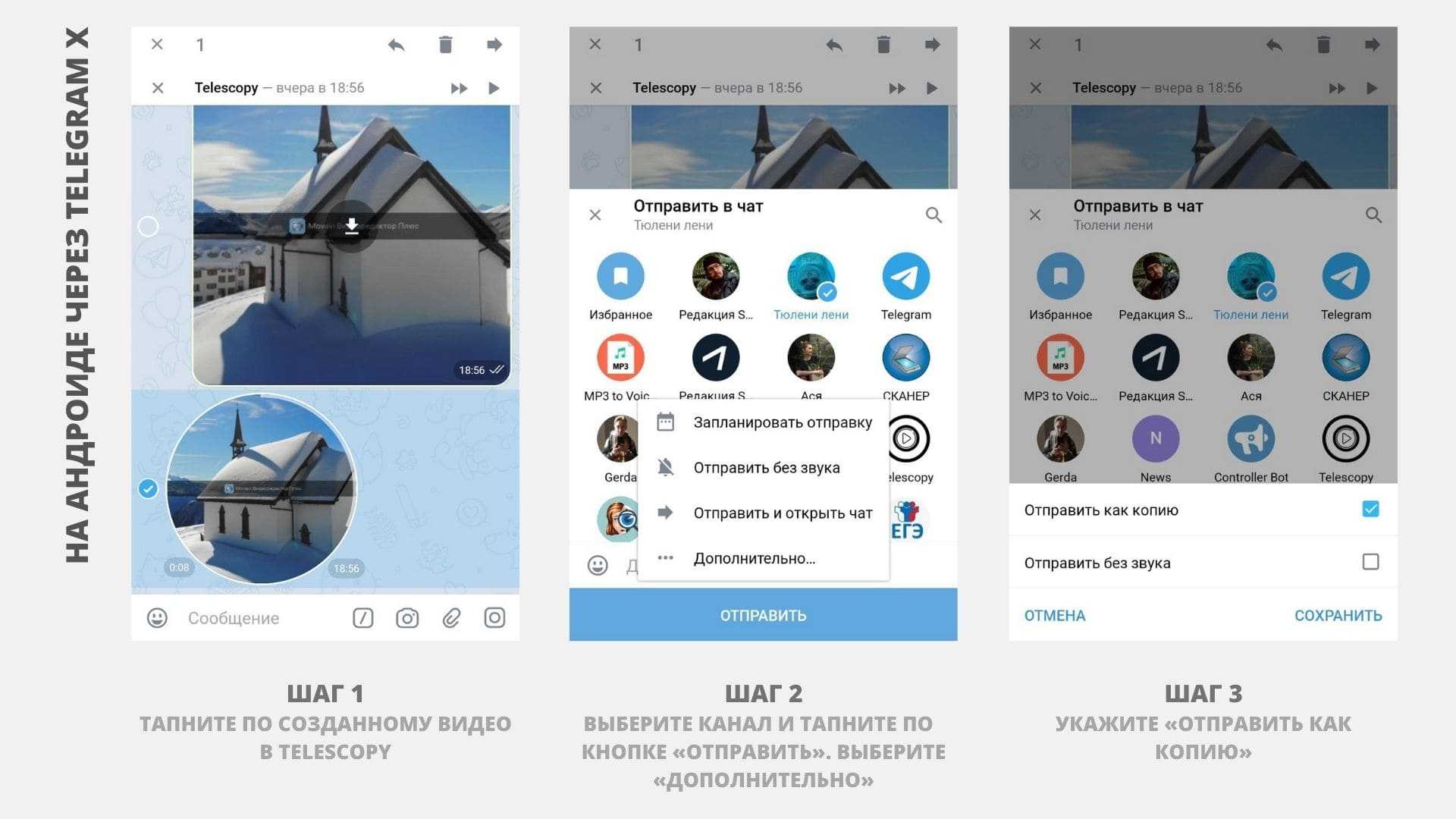 - Сделайте репост на канал без указания источника. На айфонах – тапните по репосту и укажите «Скрыть имя отправитель». На андроиде через Telegram X тапните по кнопке «Отправить» и отметьте пункт «Отправить как копию».