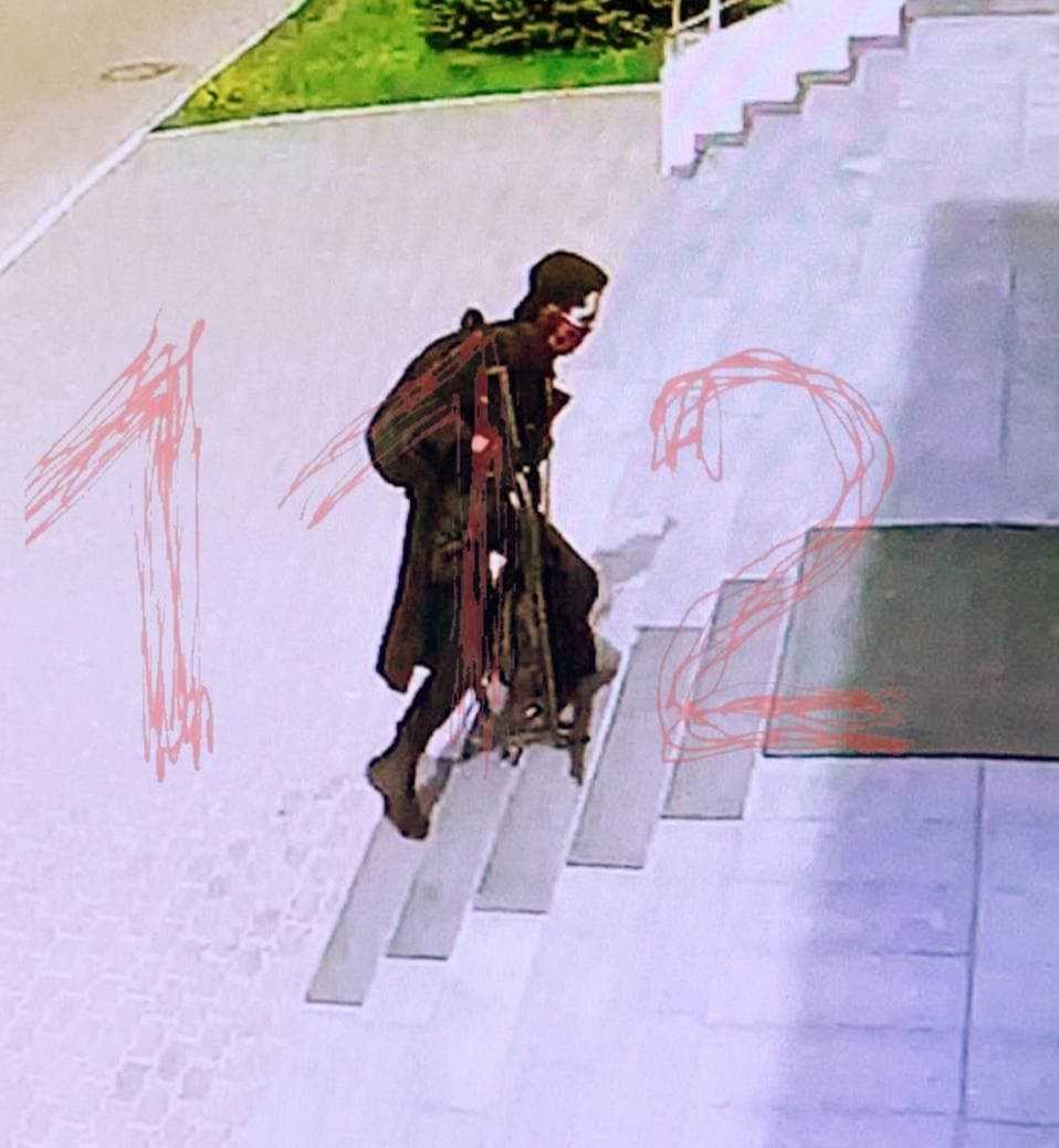 Утром 11 мая около 9:24 Галявиев шел дворами к школе. Он был в маске, с ружьем и рюкзаком с патронами. Его маршрут попал на камеры видеонаблюдения. В школу он зашел беспрепятственно.