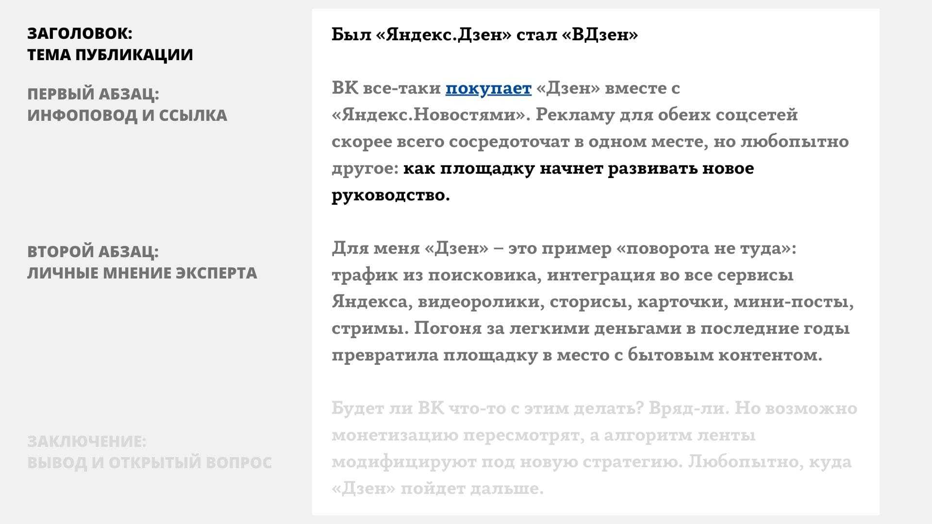 Как и личные посты, экспертные пишутся с субъективной точки зрения автора, но опираются на факты и направлены на профессиональную сферу. Цель – рассказать что-то полезное аудитории, помочь решить проблему или дать верное направление в профессии.