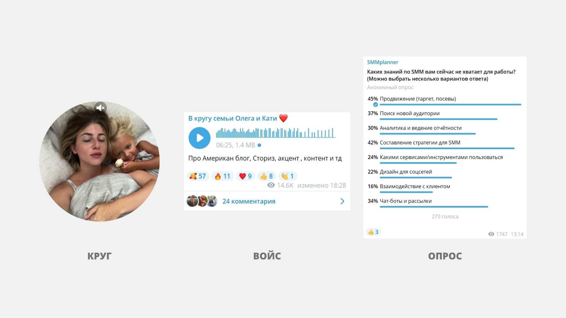 Прежде чем делать посты в Телеграме, следует разобраться, какие форматы контента здесь есть.
