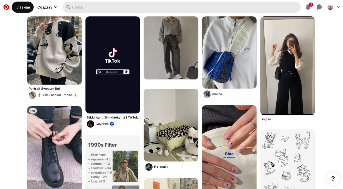 Преимущества. В Pinterest можно просто посмотреть на красивые картинки и помедитировать над созданием мудбордов. Параллельно в соцсети можно узнать о том, как выглядят популярные среди молодежи тренды — например, fairytale core или Y2K fashion.
