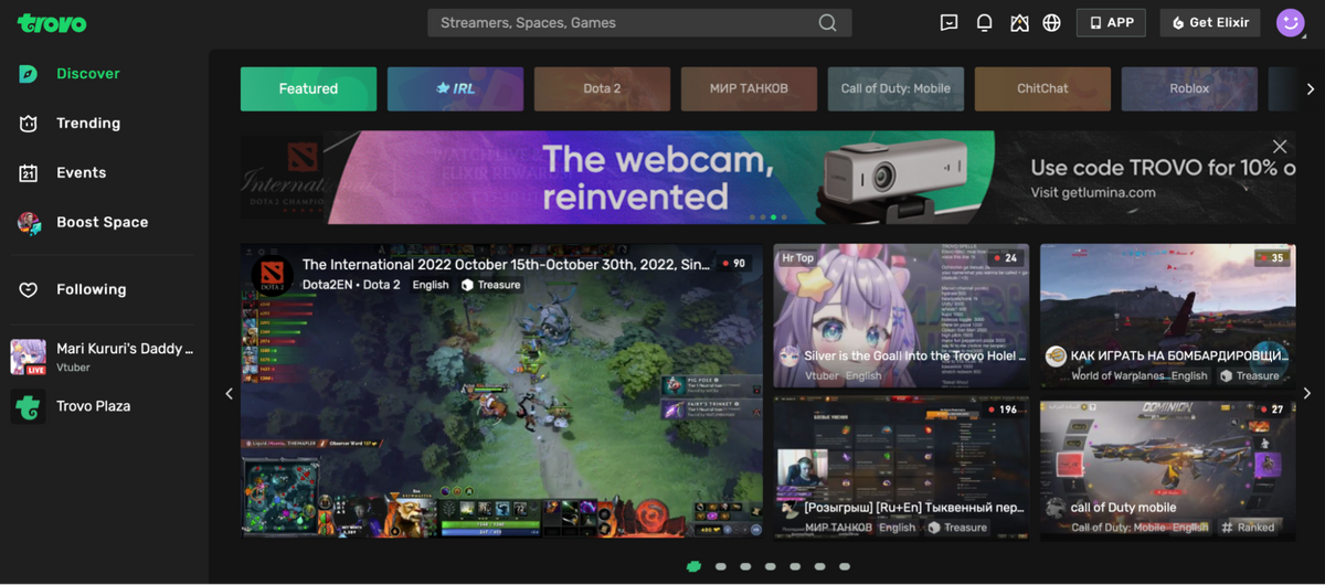 Преимущества. В Trovo есть российское сообщество как авторов, так и зрителей. После того как Twitch отключил монетизацию в России, многие перешли именно в Trovo. На главной странице встречаются десятки русскоязычных стримов.