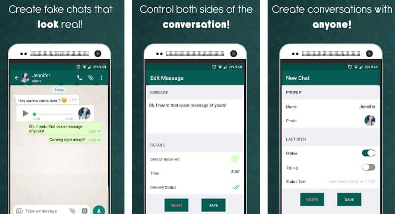 Если вы хотите подделать текстовые сообщения WhatsApp, вам стоит попробовать приложение Fake Chat Conversations.