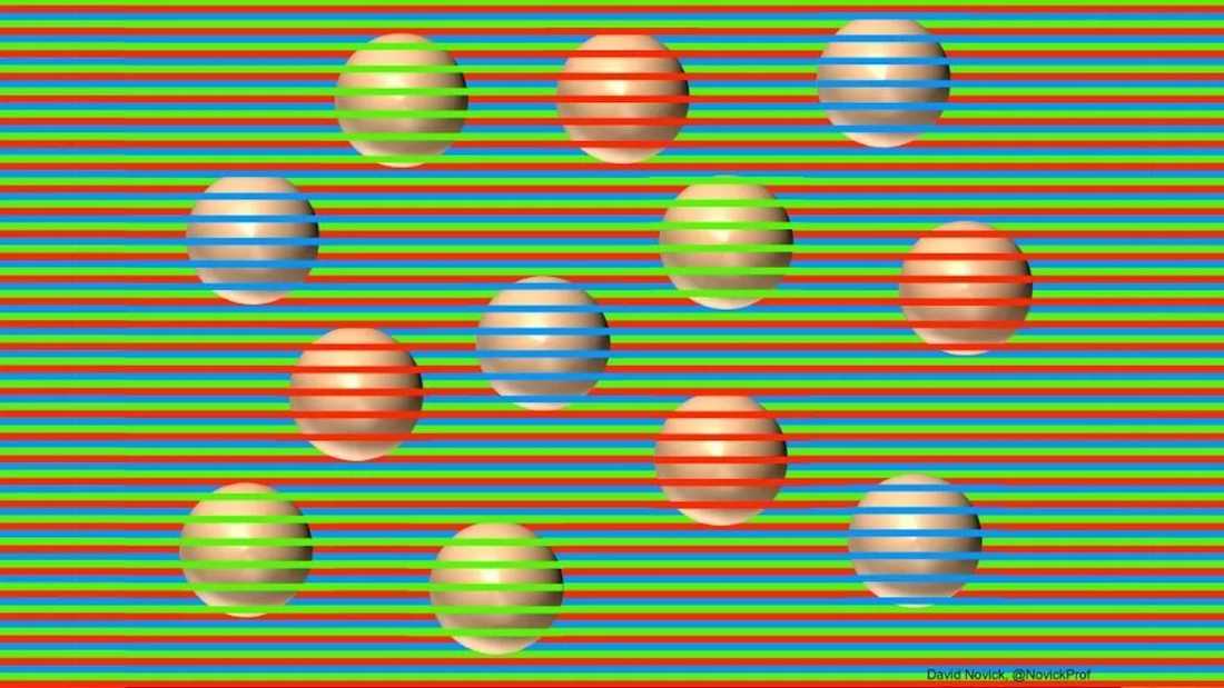 Посмотрите на изображение ниже. На нем располагаются целых 12 сфер синеватого, красноватого и зеленоватого оттенков, так? На самом деле, все сферы — полностью одноцветные. По словам профессора Дэвида Новика, создателя иллюзии из Университета Техас в Эль-Пасо (США), «оригинальный» цвет шаров — бежевый. При этом чем меньше такое изображение, тем отчетливее мы видим неправильные оттенки.