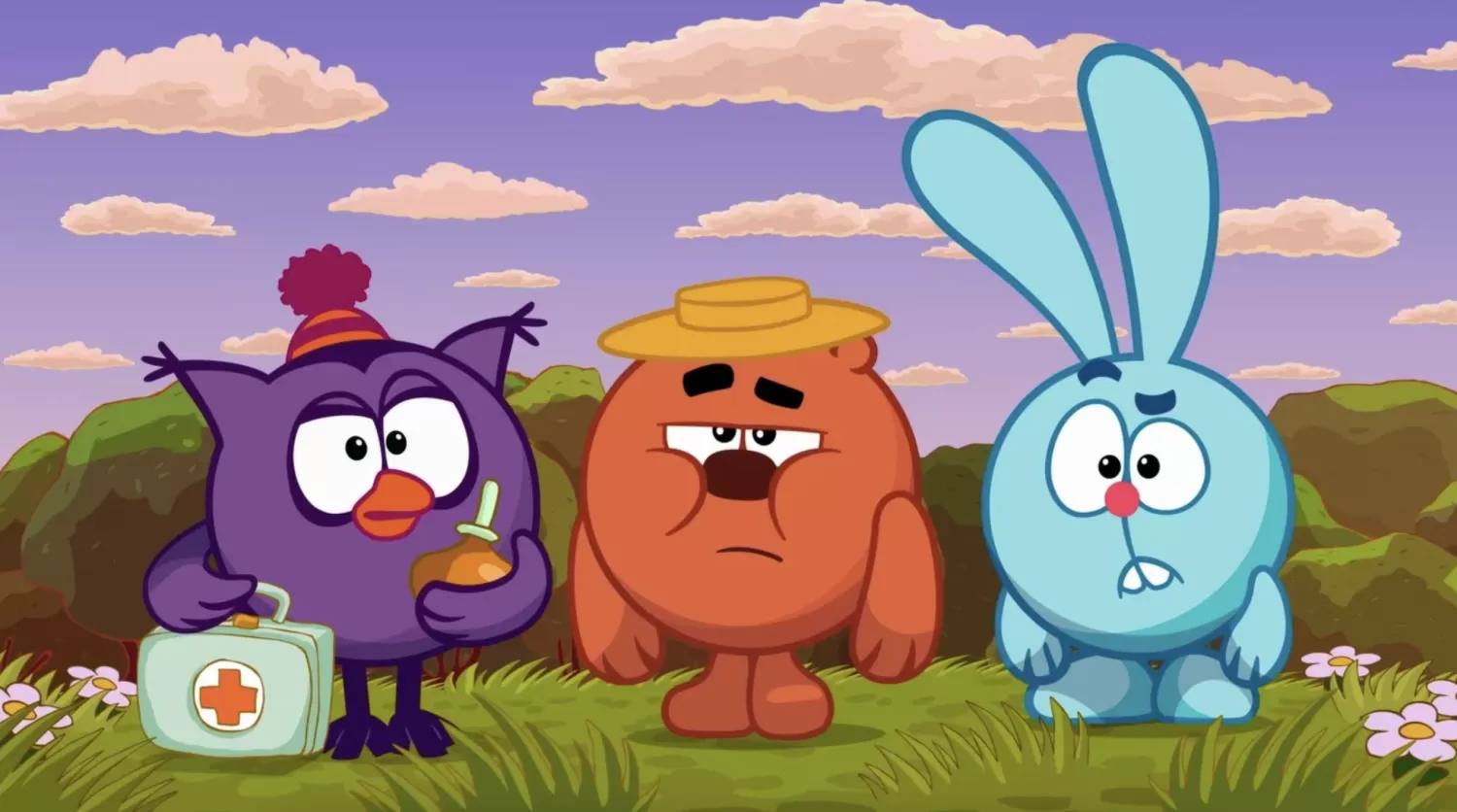 Крош и Ёжик — самые юные обитатели сюжета. Половыми вопросами пока не страдают, поэтому их энергия уходит на познание мира и авантюры. Работают по принципу «сила+мозг». Как и ровесники из «Южного Парка», хитрее и проницательнее взрослых товарищей.