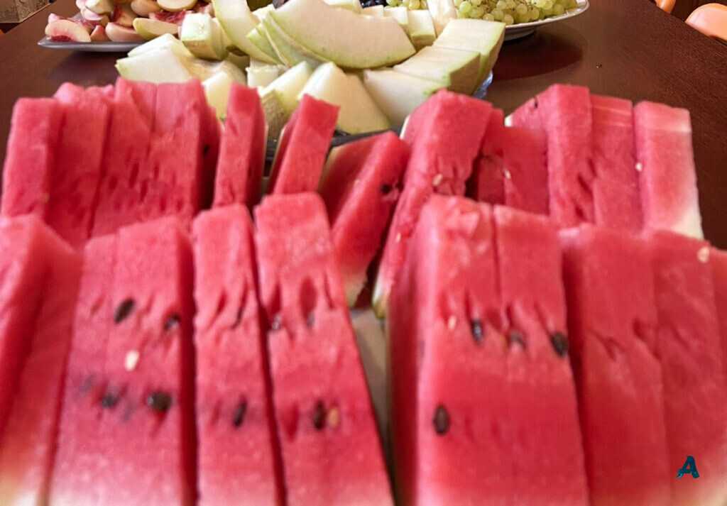 - Обязательно: нектарины, персики, морковь или морковный сок, тыквенный сок, с июля по сентябрь обязательно арбузы и дыни – каждый день