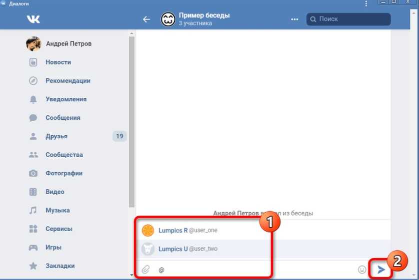 - Упоминать можно только тех пользователей, которые состоят в данной беседе;