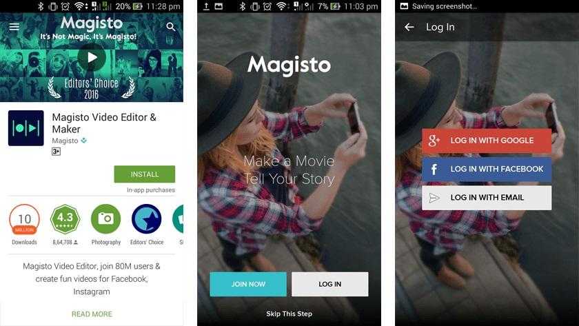 Приложение склеивает в единое целое фото- и видеофрагменты. В наличии фильтры и эффекты, переходы, автоматическая стабилизация съемки. Может наложить звуковой ряд – музыка для вайнов берется из библиотеки треков смартфона или встроенной коллекции Magisto. Есть прямая выгрузка результата в Фейсбук, Инстаграм, YouTube, WhatsApp.
