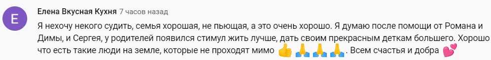 Меньше чем за сутки ролик про малообеспеченную семью попал в тренды ютуба и собрал почти 360 тысяч просмотров. Зрители благодарили Романа и Дмитрия за то, что они помогают героям выпуска. Но некоторых комментаторов возмутило поведение главы семейства, который, по их мнению, мог бы найти хоть какую-то работу, а не жаловаться на то, что ничего не выходит.