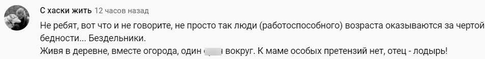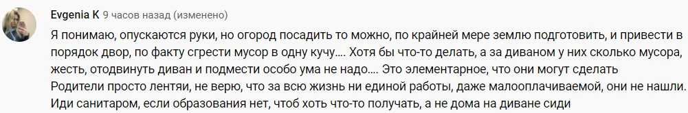 Комментаторы считали, что отцу семейства было по силам навести порядок на территории участка. Также в реплаях появлялись и советы, на какую работу можно устроиться, чтобы обеспечивать семью. Похоже, что не все зрители поверили в трудную жизненную ситуацию — некоторые думали, что в родителях говорит банальная лень.