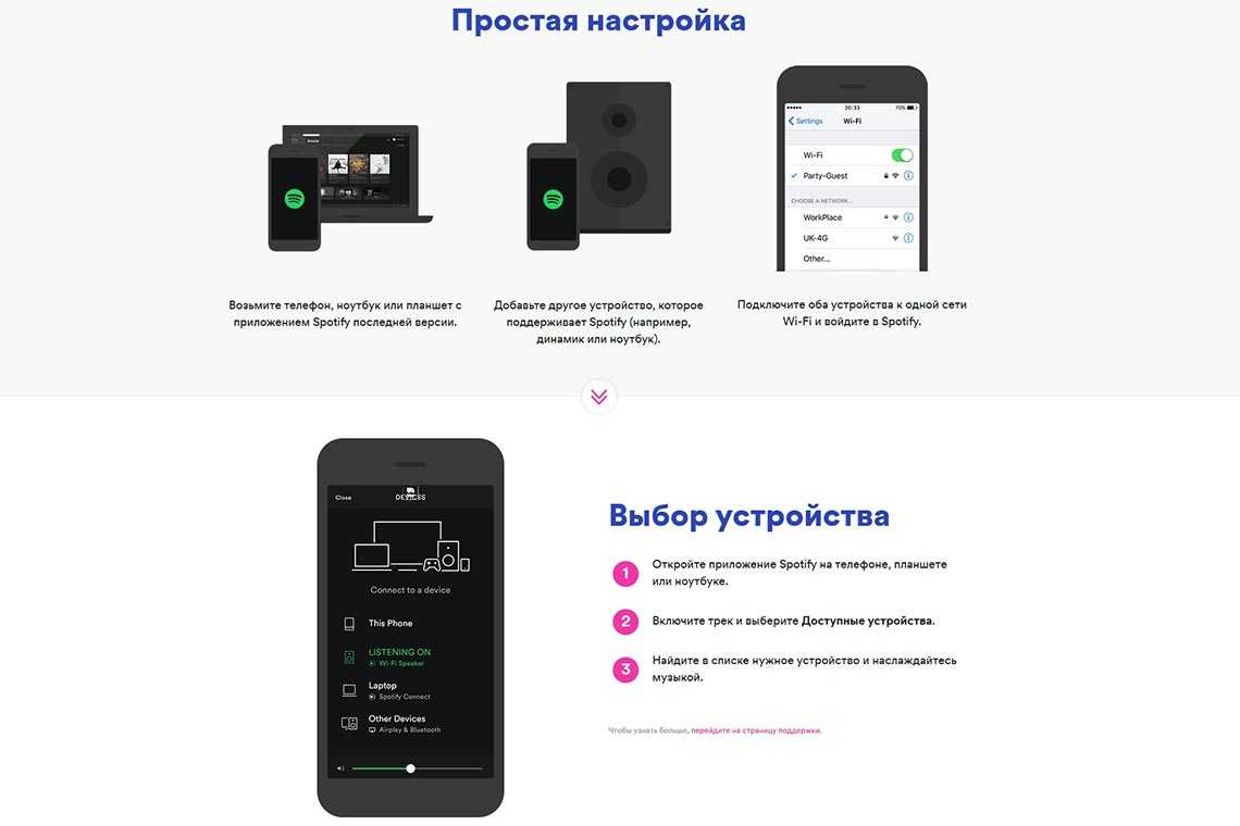 - Можно использовать одно устройство для прослушивания музыки, а с помощью второго контролировать воспроизведение треков. Музыку можно слушать с чего угодно, включая пылесос. Настройка удалённого доступа осуществляется с помощью Spotify Коннект;