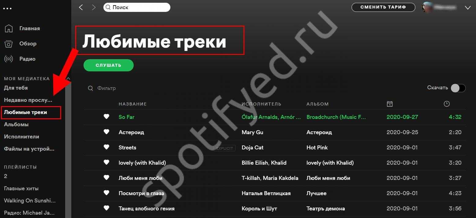 Любимые треки Спотифай – это композиции, которые особенно понравились вам, своеобразная коллекция избранного. В эту папку можно добавлять песни, которые захочется переслушивать постоянно!