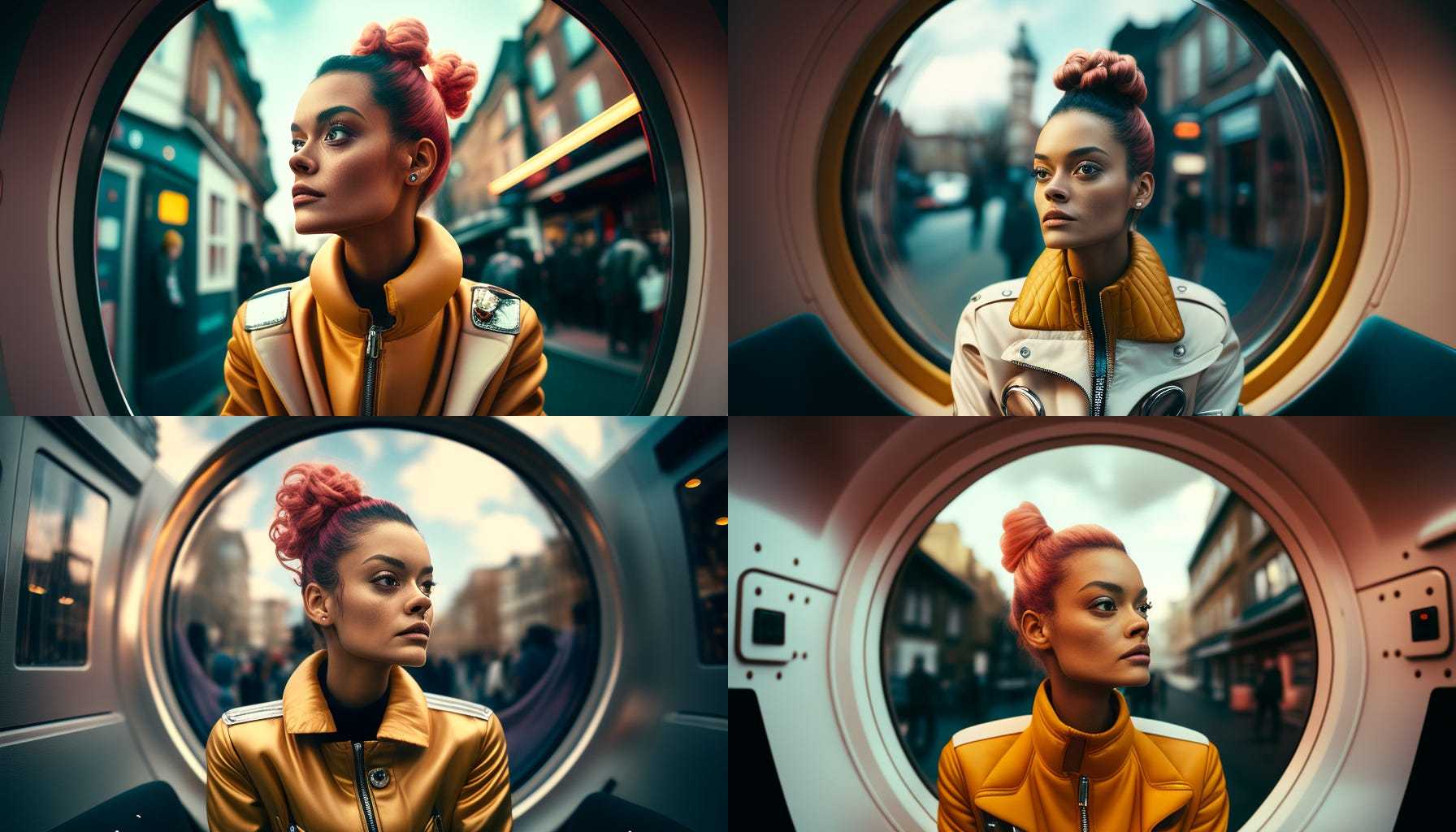 Давайте поместим Джоанну в космическую капсулу. Теперь мы видим обратную сторону использования фотографий уличного стиля в качестве вдохновения. Все наши фоны – улицы. Попытаемся это обойти.