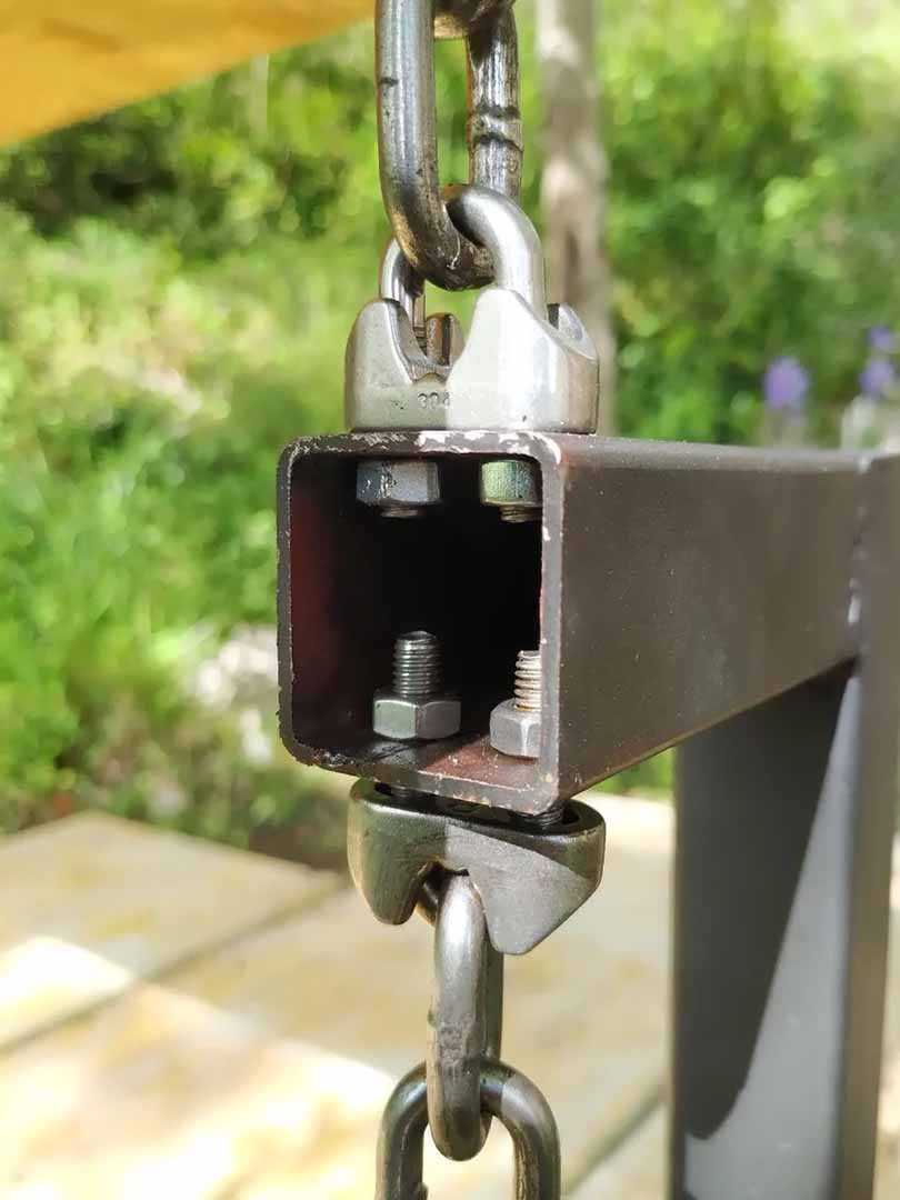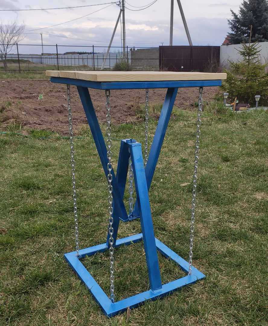 Изначально стол вызвал удивление и множество вопросов. Нашлись кто поставил под сомнение надёжность конструкции и решил усовершенствовать, сделав натяжку цепей по трапеции.