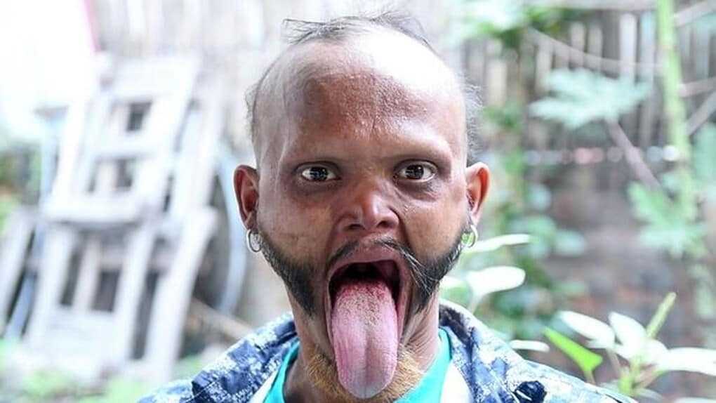 Катувал вовсю гримасничает, используя особенности своего тела: облизывает лоб, закрывает нос нижней губой и т. д. А еще у мужчины есть только один зуб, что добавляет его образу еще большей диковинки.