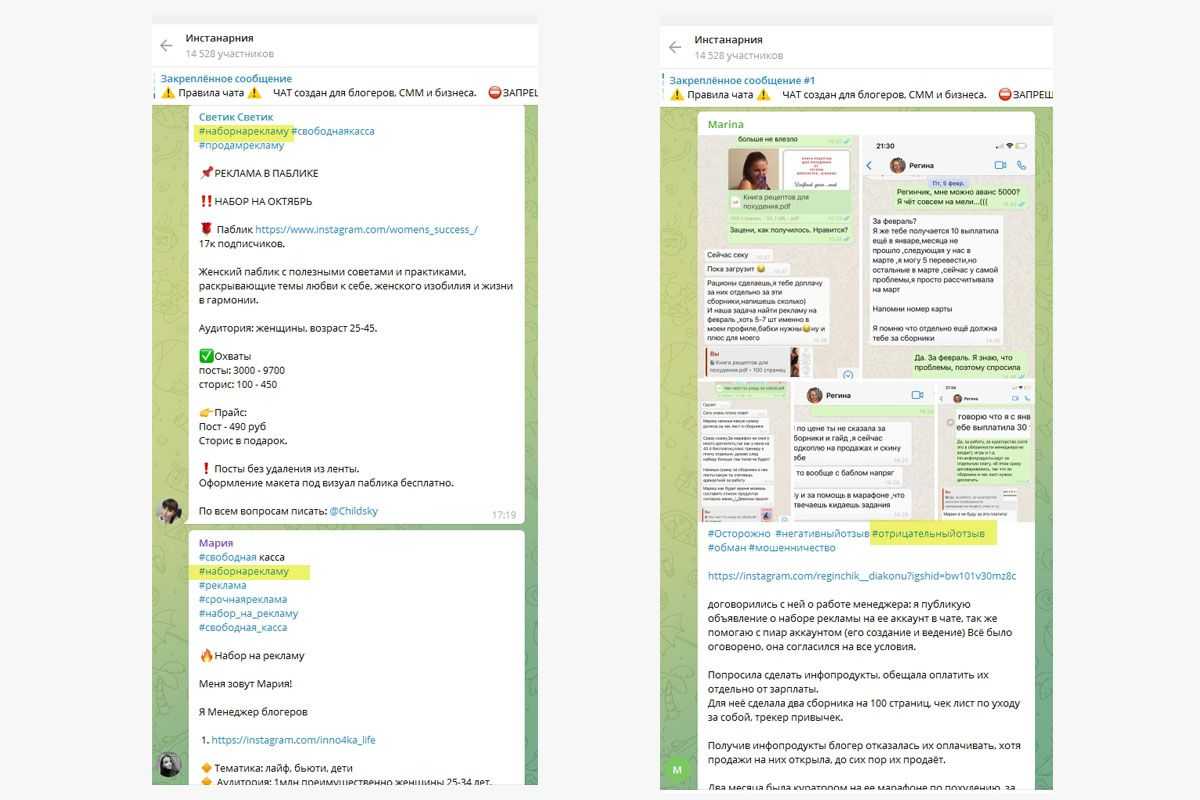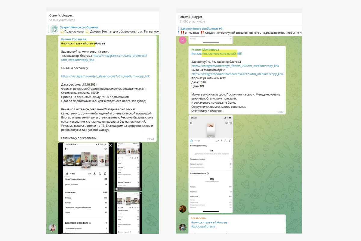 Первый ресурс – чат Инсталогия, который сейчас насчитывает больше 128 тысяч подписчиков! Они каждый день делятся друг с другом отзывами на рекламу, которую заказывают у блогеров.