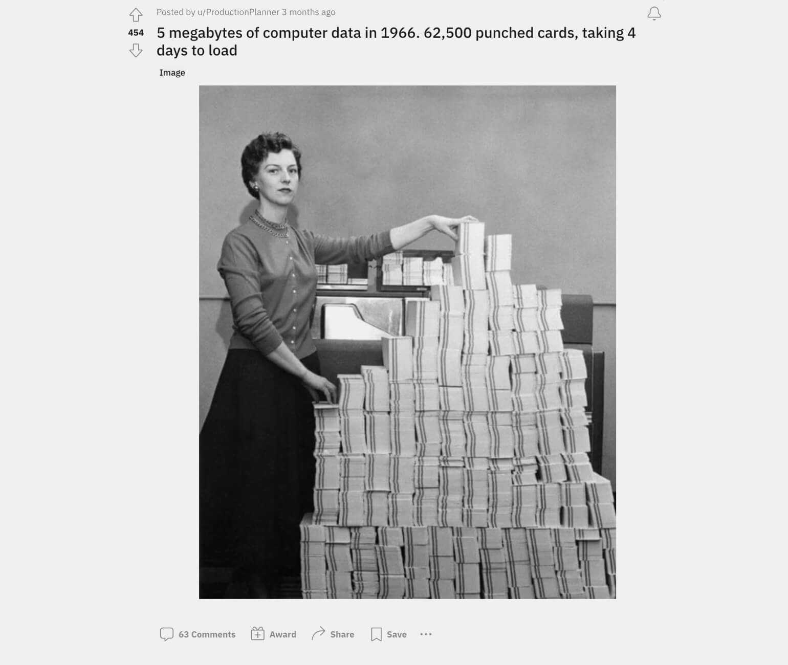 5 МБ данных в 1966 году. r/Damnthatsinteresting — собрание всего самого интересного из интернетаСкриншот: Reddit / Skillbox Media