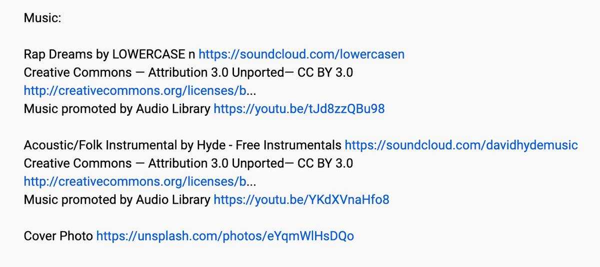 Еще в описании видео, в которых использованы треки с такими лицензиями, надо будет указать автора, название трека, тип лицензии, ссылку на нее и ссылку на источник трека.