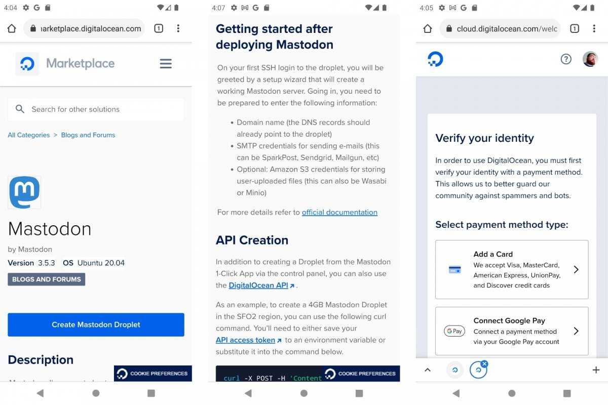 Существуют также более простые способы настроить сервер для установки узла. Например, с помощью решений для облачных вычислений, таких как DigitalOcean, рекомендованных Mastodon. Этот поставщик облачных услуг позволяет создавать виртуальные машины онлайн, называемые каплями, которые запускают службы, такие как экземпляр Mastodon.