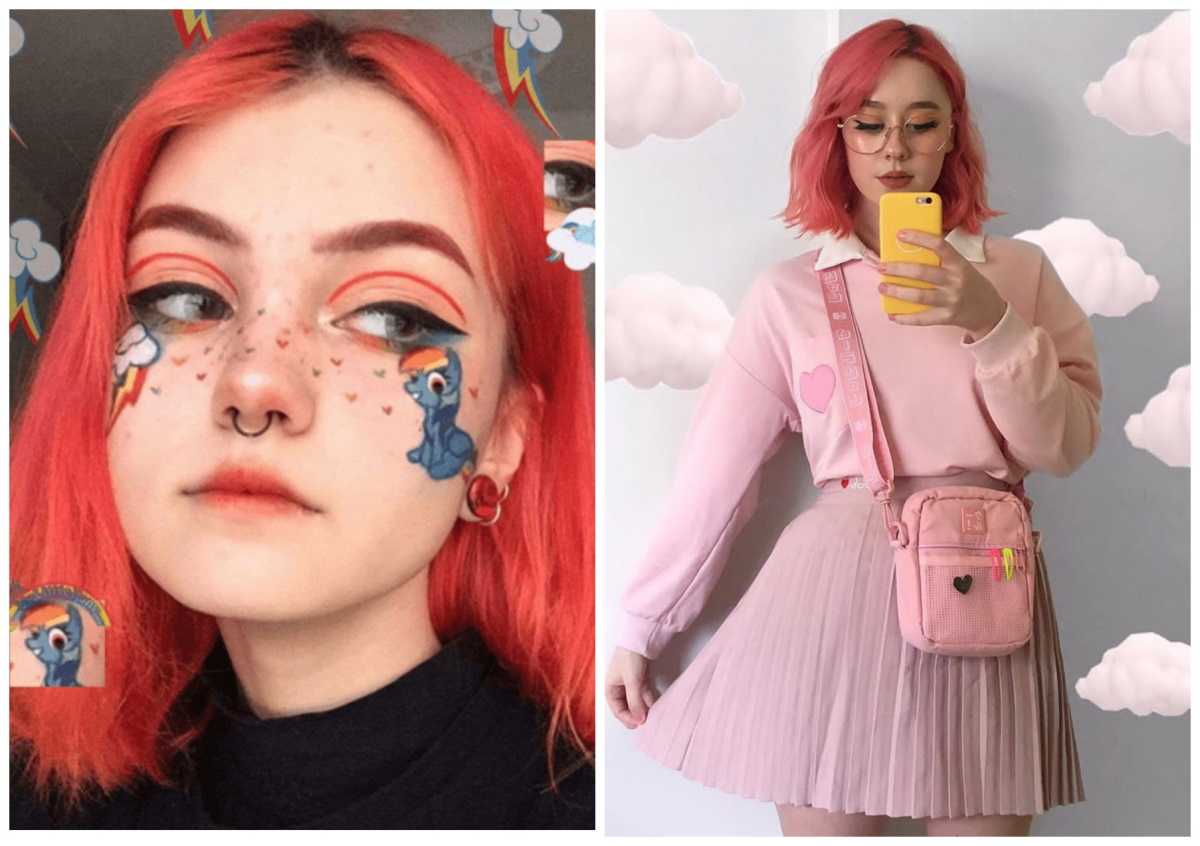 Кроме мейк-апа нужно продумать прическу, одежду и аксессуары, чтобы образ получился гармоничным. Поклонницы этого направления предпочитают естественный цвет волос, но для разнообразия могут покрасить их в розовый или лавандовый оттенок.