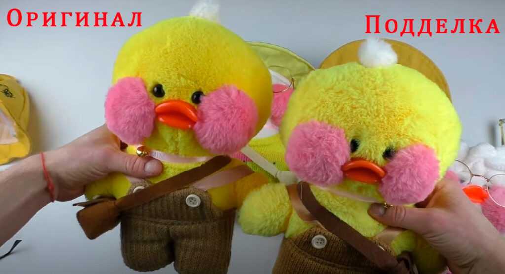 - Щечки настоящей уточки набиты холлофайбером. Без наполнителя обычно идут поддельные версии, от чего внешний вид Лалафанфан страдает.