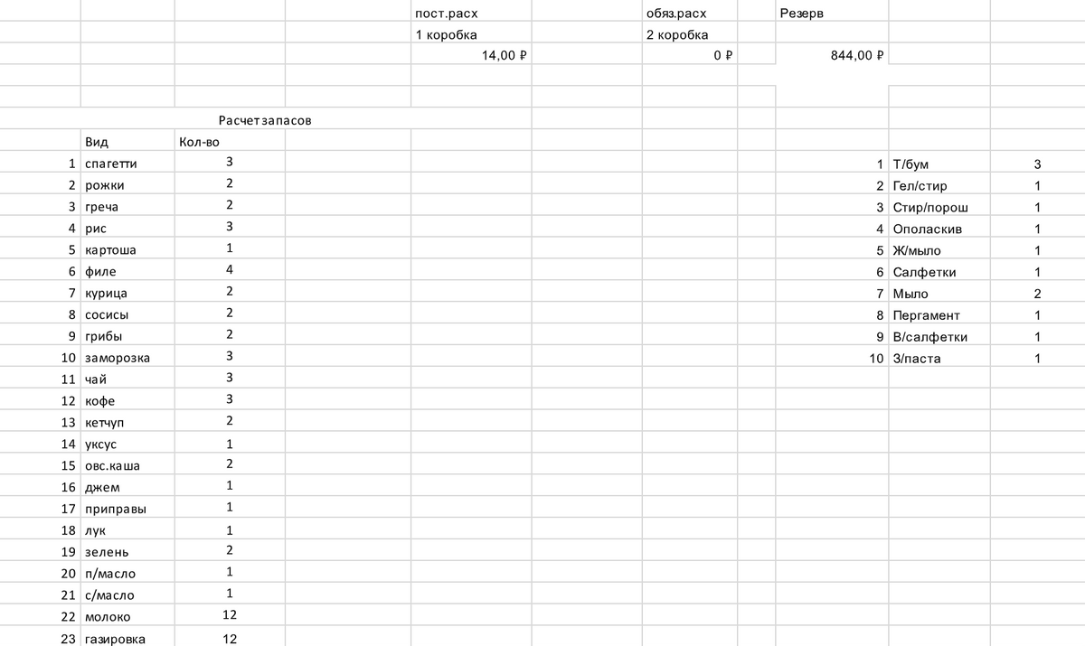 В резерв выводится определенный процент дохода. Эти деньги отложены на непредвиденные случаи — например, на лекарства или поход к врачу. Сумма, которая остается в резерве в конце месяца, по идее должна идти в «Запас» — это неприкасаемые средства, которые вносятся на счет. Сейчас запаса у нас нет, а если в конце месяца остаются деньги, они переносятся в резерв на следующий.
