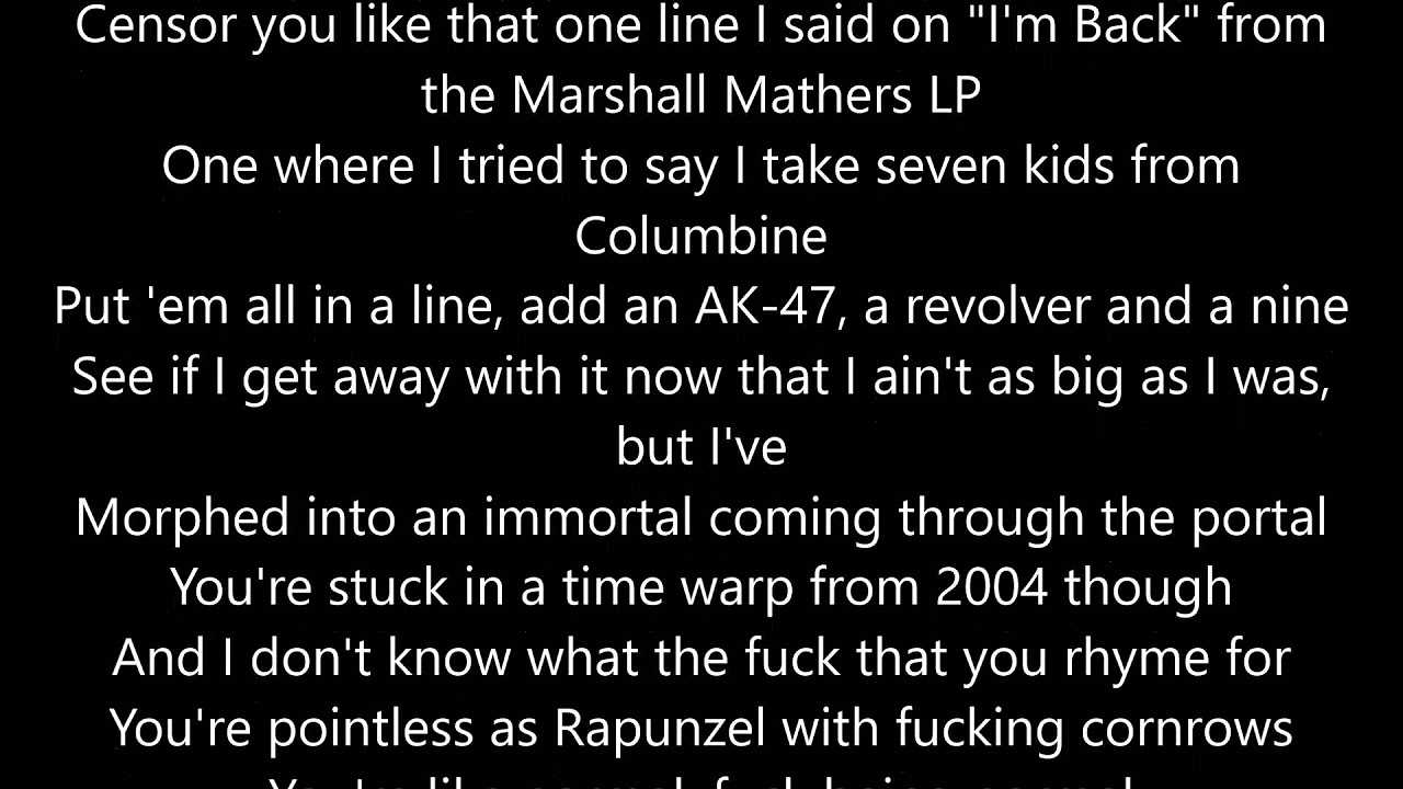 При одном только упоминании имени этого рэпера в голове сразу же начинают звучать строки из его композиции «Break Ya Neck». Стать рэпером его вдохновила кассета с записями Ice-T, когда-то подаренная ему дядей. Поначалу Маршал Брюс Мэтерс III (так звучит настоящее имя Эминема) принимал участие в уличных баттлах, победа в которых давалась ему с завидной легкость, а несколько позже он уже завоевал настоящую популярность у уличной публики. Но не все так просто. Чернокожие МС считали, что белые не имеют способности к прочтению речевок и доказывали свою точку зрения довольно грубо.