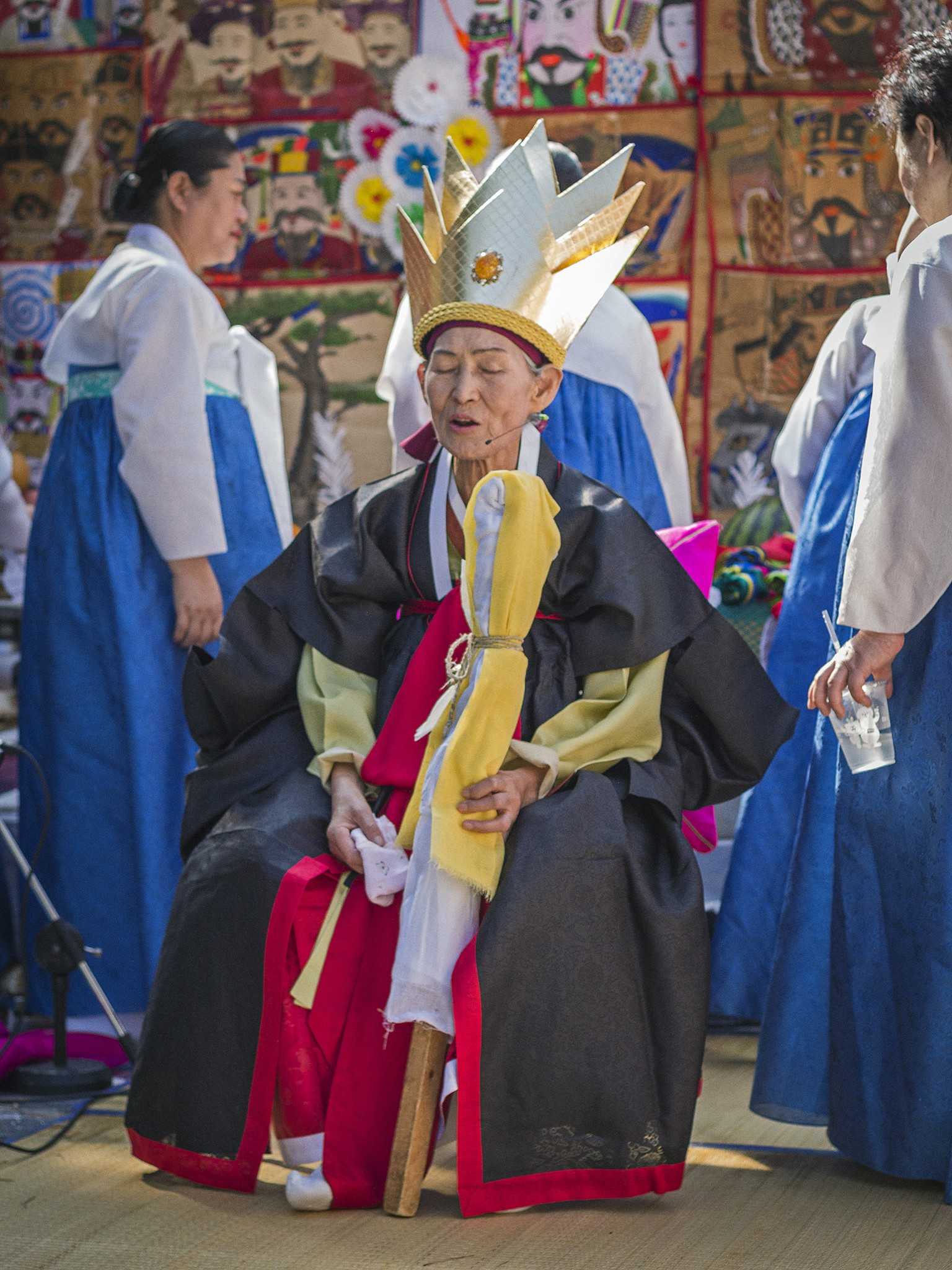 Так, в конце XIV века, с образованием династического королевства Чосон и принятием неоконфуцианства как основной религии, шаманизм стал гоним. Однако и тут гибкость этого верования не позволила ему сгинуть. Носители веры были изгнаны из больших городов и ушли в деревни и горы, а шаманами остались в основном женщины из низшего класса (хотя мужчины тоже иногда все же занимаются этим делом, их называют баксу), в противовес другим патриархальным религиям востока. Чем там занимаются неграмотные женщины в деревнях уже мало кого волновало. А эти якобы порицаемые женщины из захолустья так и продолжили проводить свои ритуалы, в том числе и для высокопоставленных особ, просто теперь это делалось за закрытыми дверями.