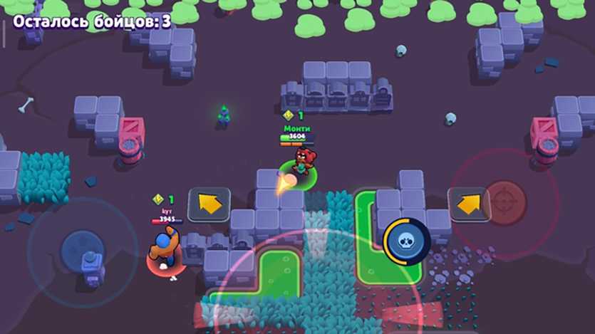 Если враг преследует вас, постарайтесь побегать вокруг препятствий, чтобы хоть как-то укрыться от огня. Но помните – это не панацея. Некоторые бойцы, например, Барли, могут атаковать через них навесом, а еще есть пробивающие препятствия суперы. Так что будьте осторожны, если видите вокруг врага характерное желтое свечение.