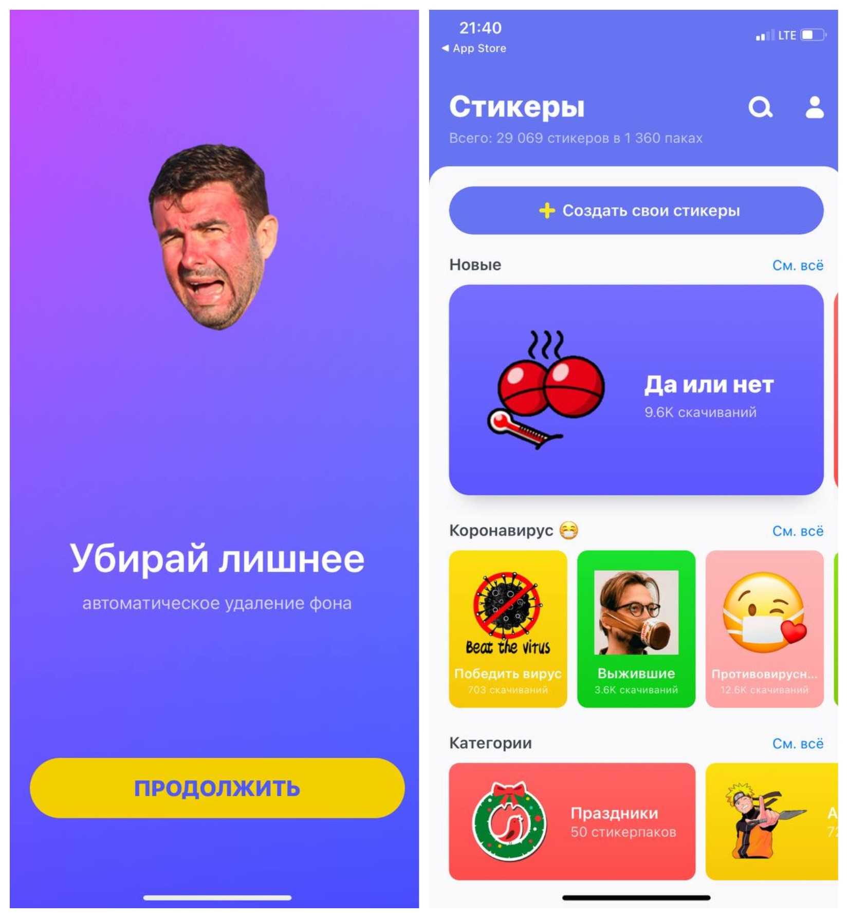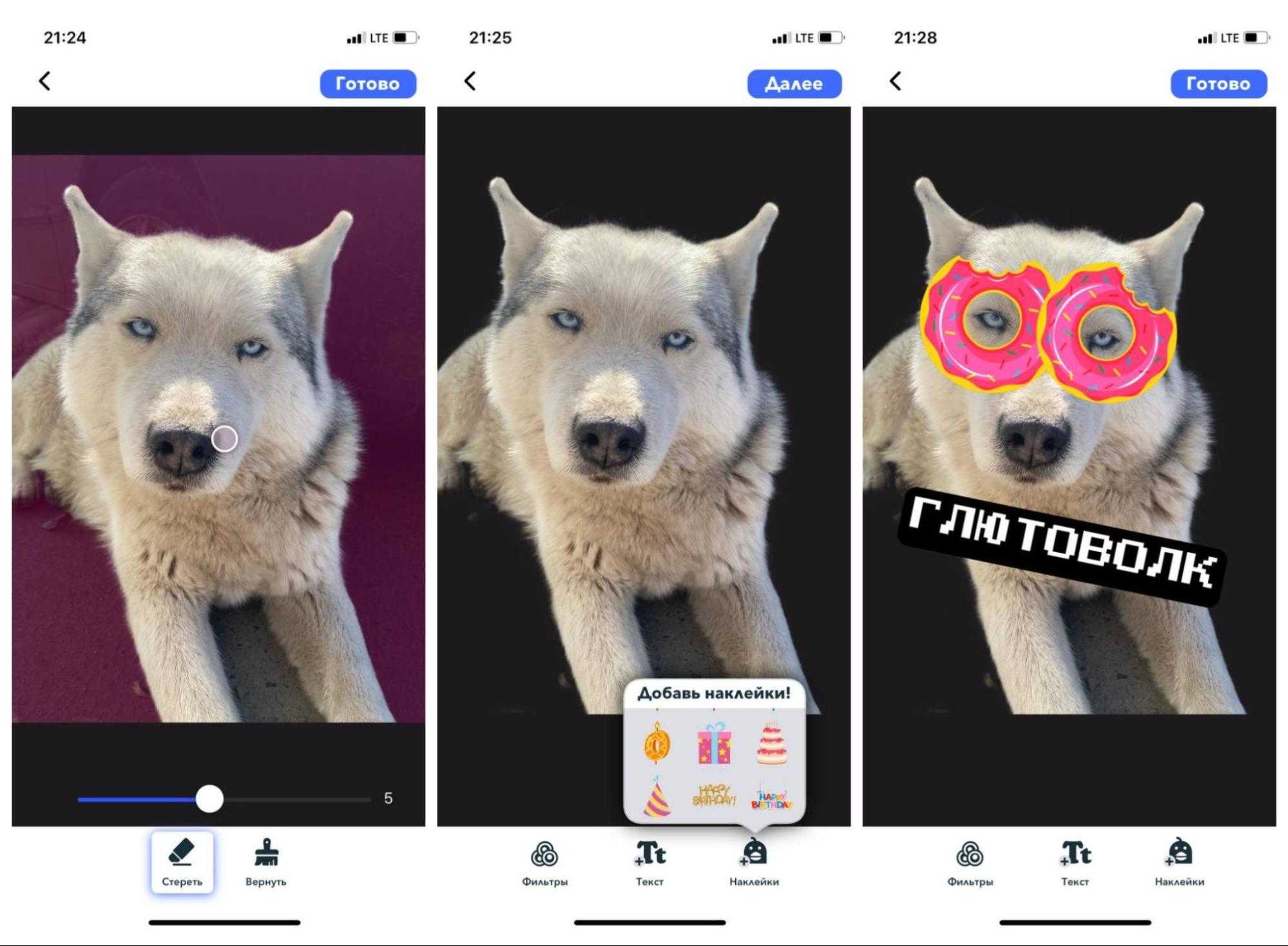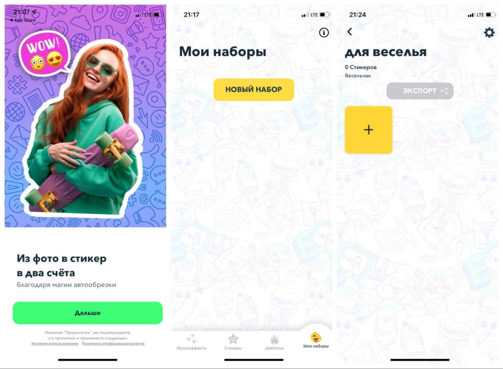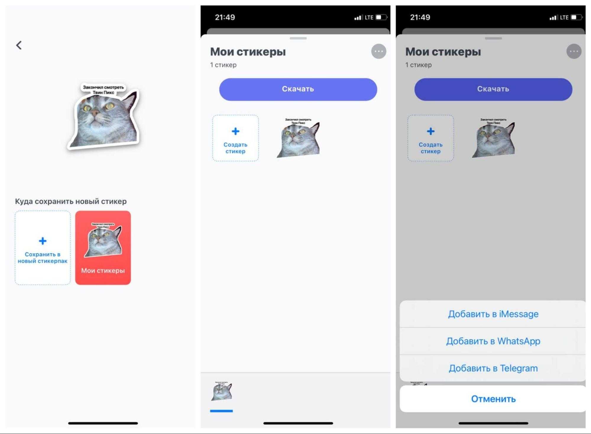 Принцип работы приложений заключается в том, что вы загружаете в него картинку и можете преобразовать ее в наклейку – при необходимости удаляете фон, делаете обводку, тени.