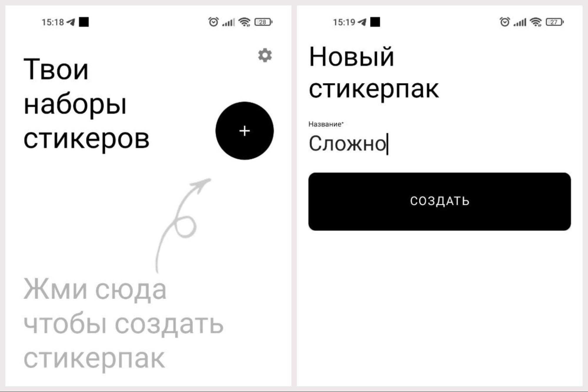Сразу после установки можно начать создавать стикеры. Первым делом создаётся набор — стикерпак: