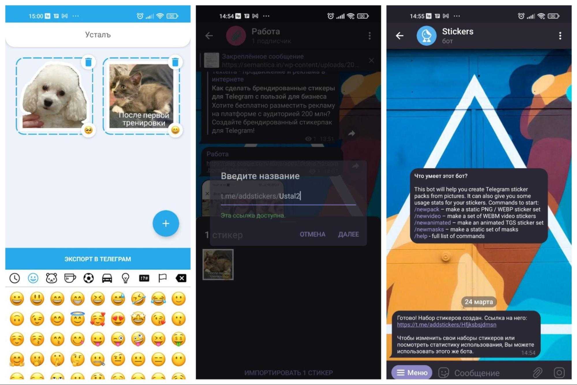 Пример, как изготовить и отправить в Телеграм стик-пак с телефона на базе Андроид: