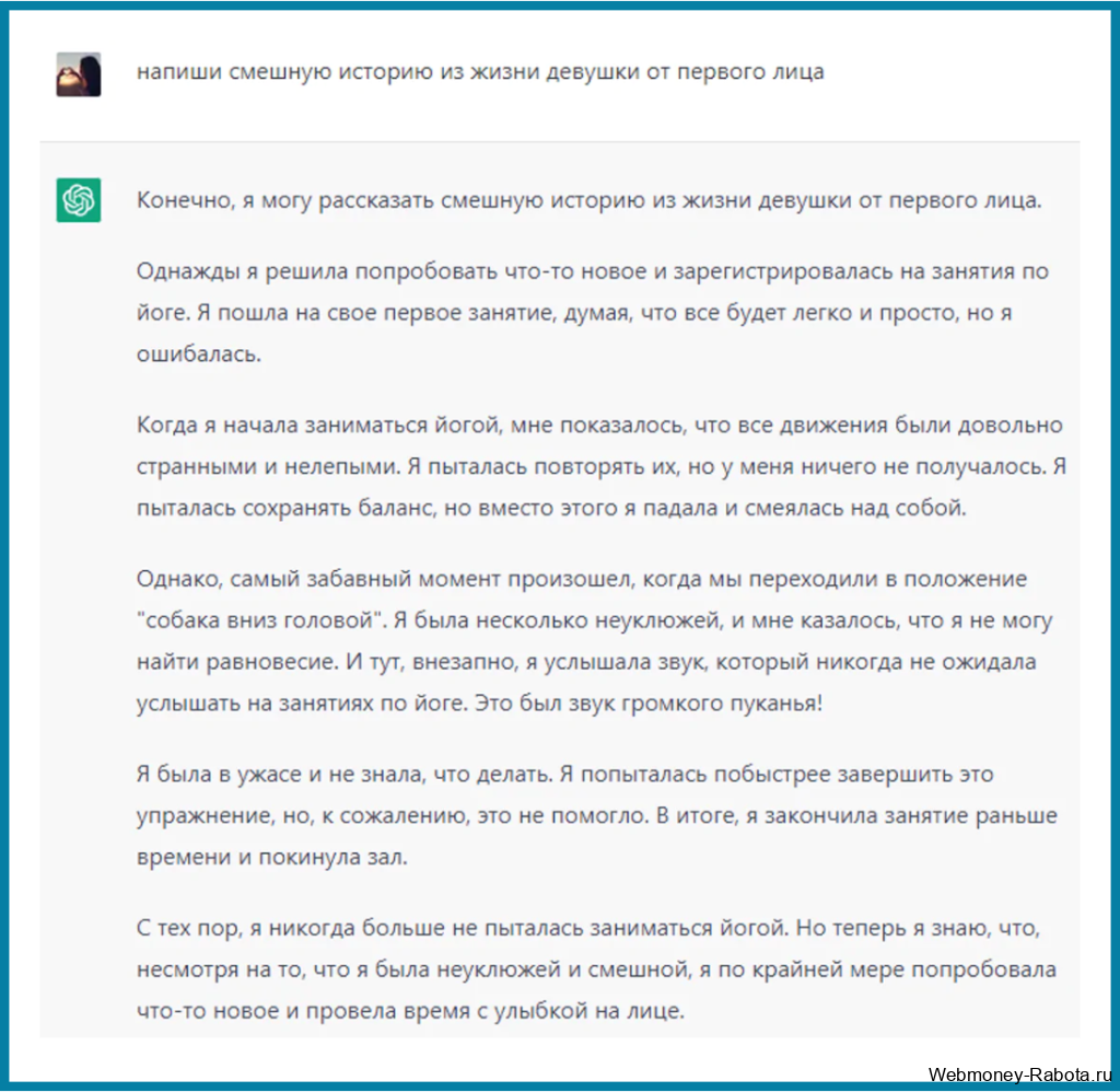К боту можно обратиться с любыми запросами, несмотря на установленные ограничения с эротическими темами, проект реально полезный. При разработке интересного контента, всё начинается с идеи. В ChatGPT они выдаются в любом количестве, нужно только правильно составить вопрос: