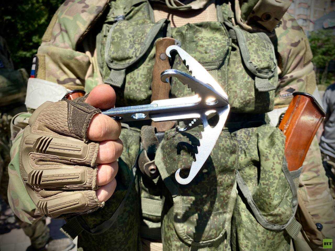 - Сапёрная кошка, которую сделал Дмитрий, в руках российского бойца.