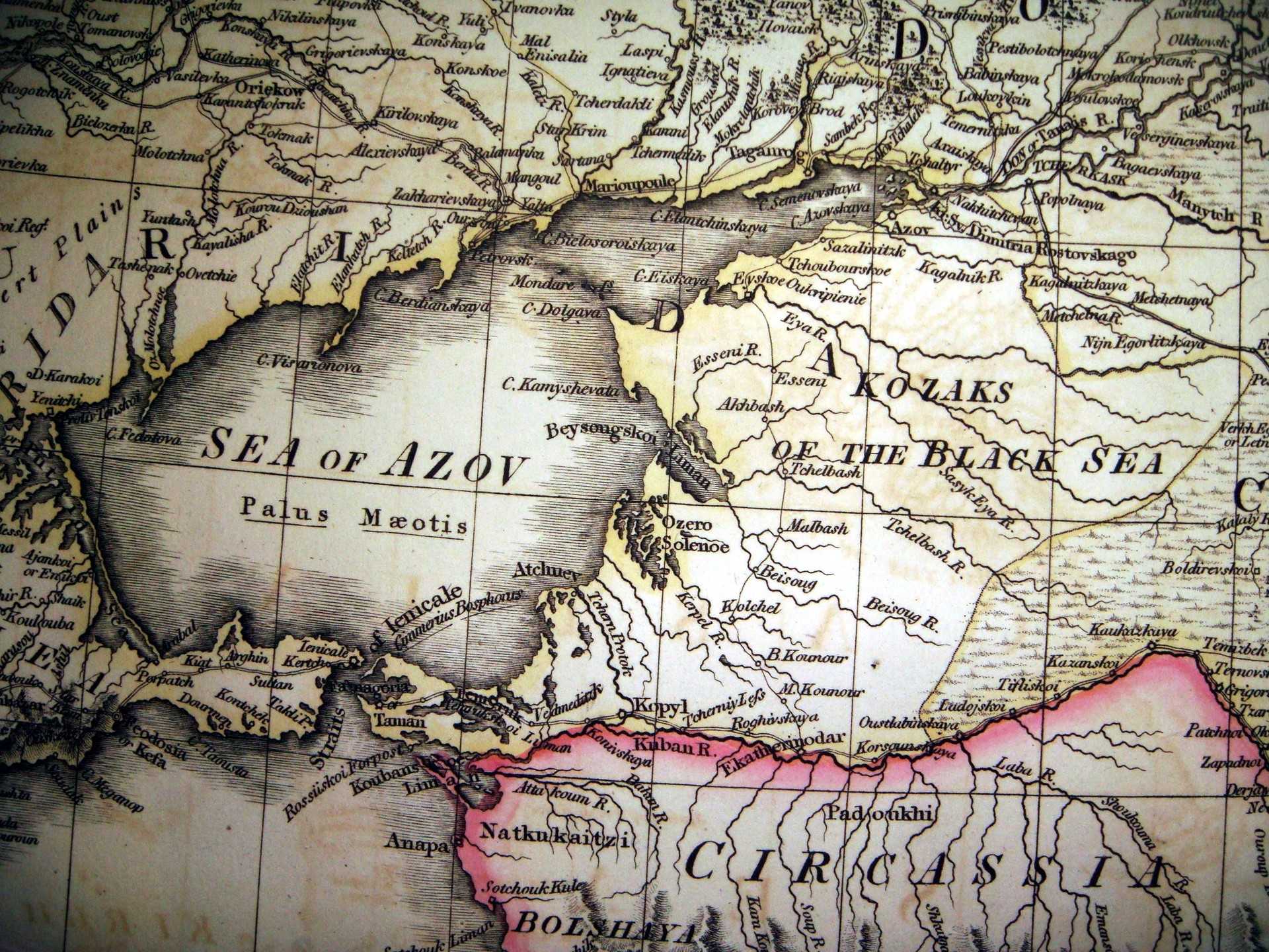 - Фрагмент карты «Доминионы России в Европе» с землями Войска черноморских казаков, изданной по рисункам и картам Академии наук в Санкт Петербурге, 1806