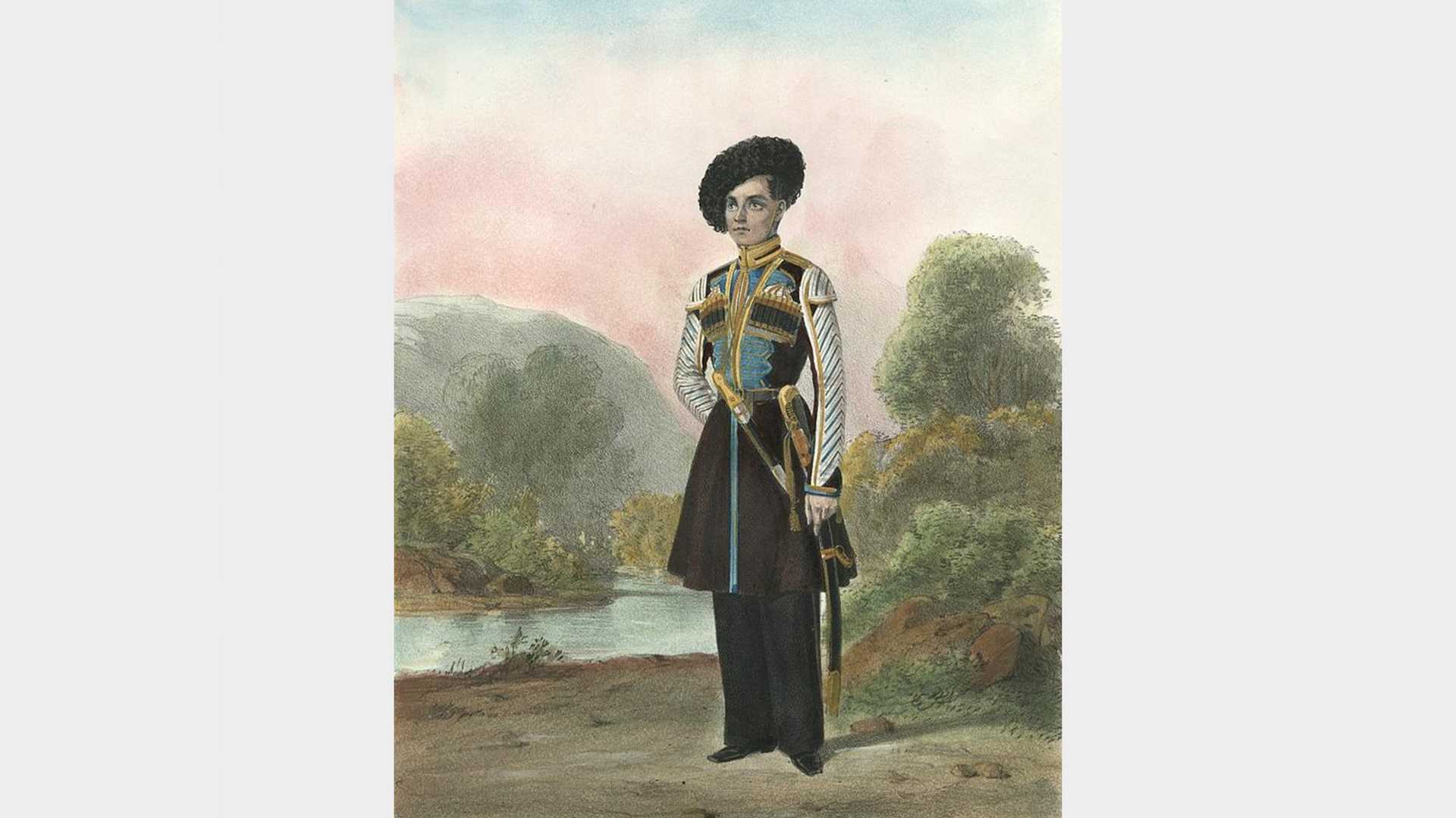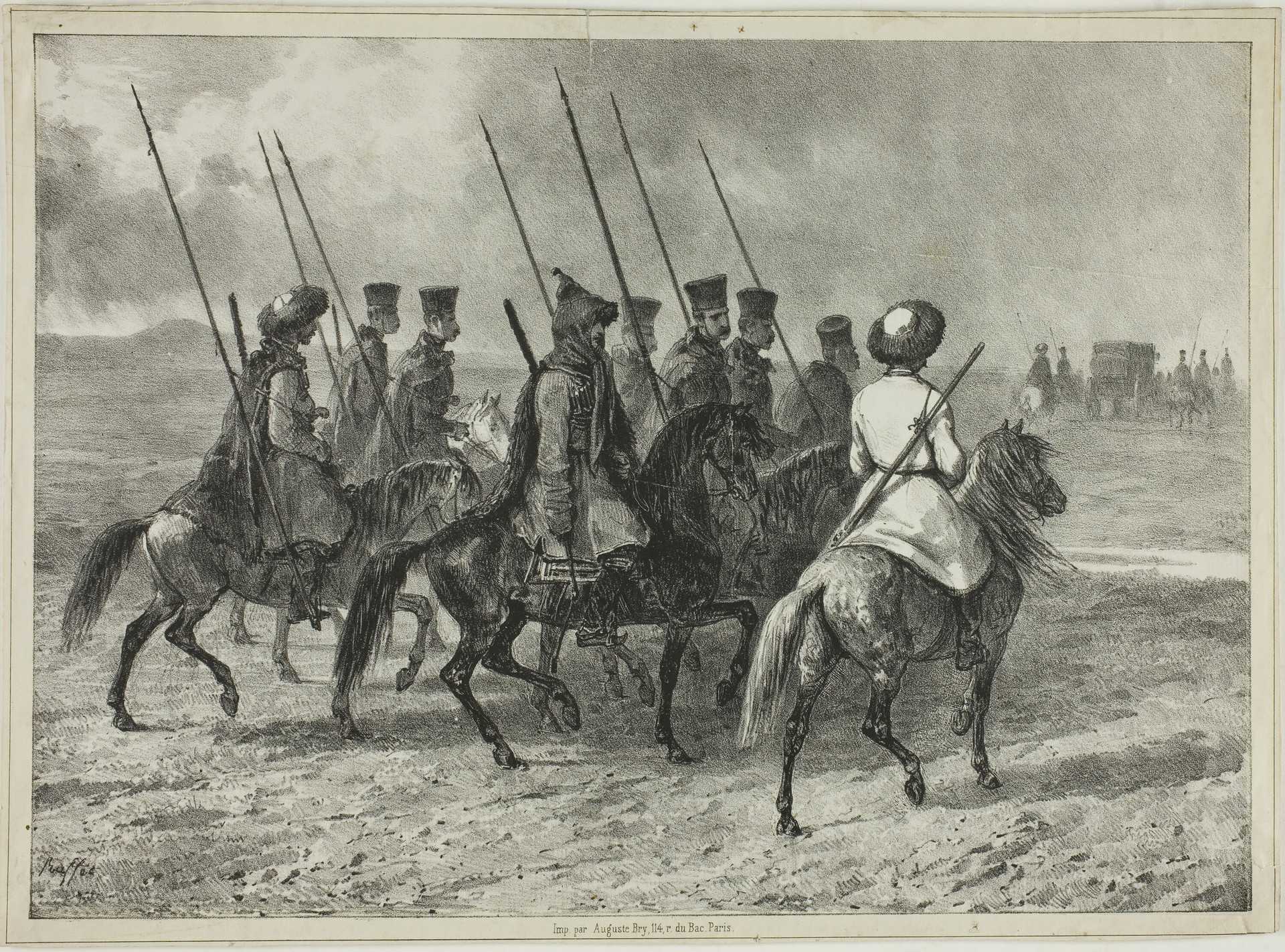- Казацкий эскорт на кубанской границе. Рисунок Огюста Раффе. Первая половина XIX века