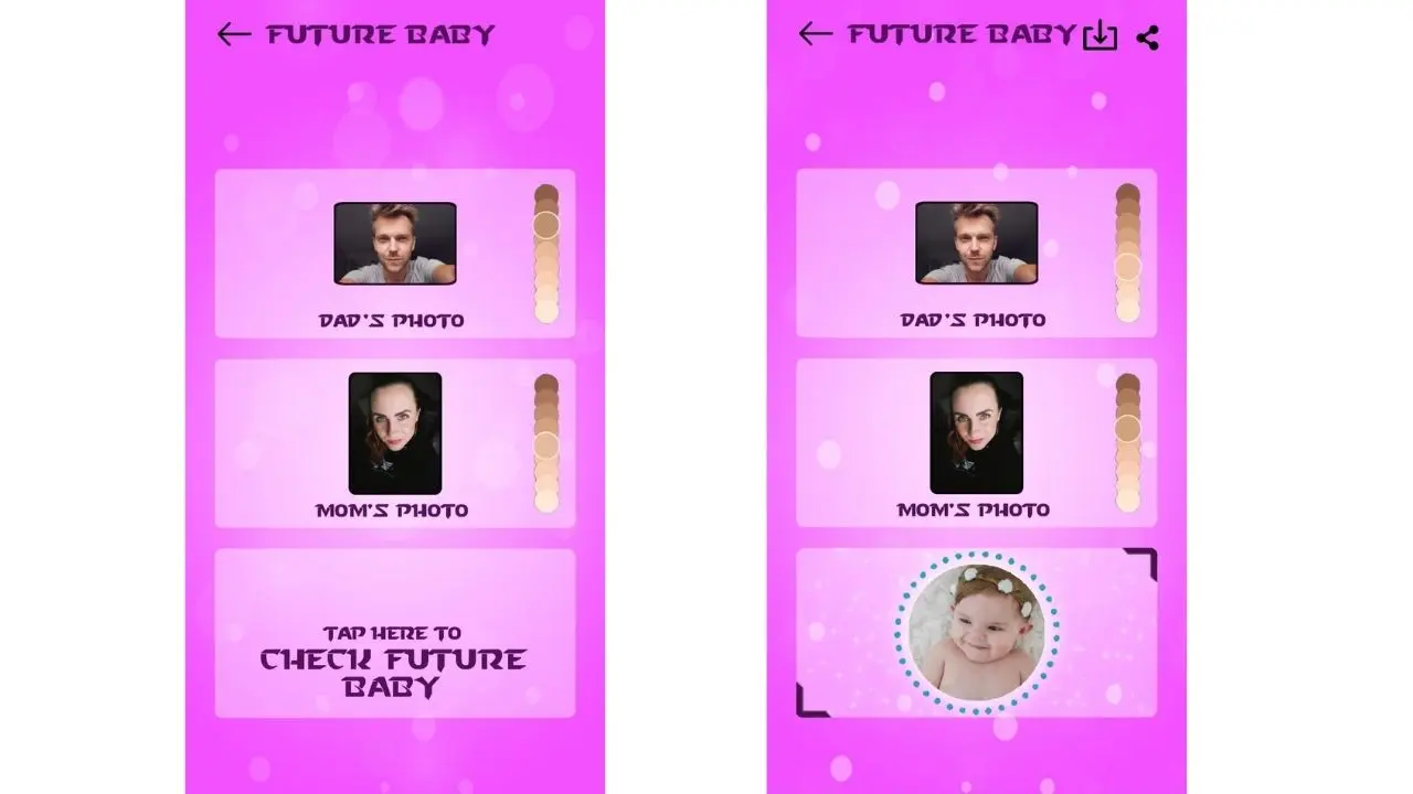Популярнейшее из мобильных приложений для Андроид позволяет родителям увидеть будущее и определить внешность еще не родившегося малыша. Усовершенствованные алгоритмы с новыми технологиями тщательно анализируют детали на изображениях лиц. Поэтому вашу будущую семью можно предсказать весьма достоверно.